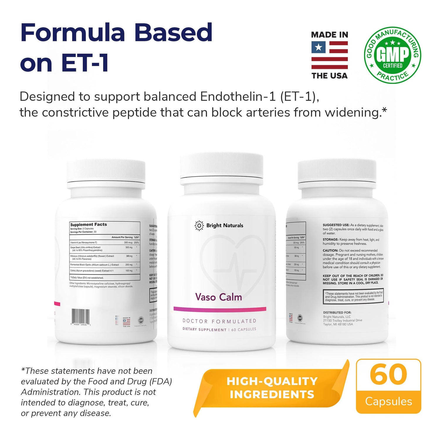 - High-Quality, Trusted Brand: Embrace proactive health with Vaso Calm. Proudly crafted in the United States and exclusively formulated with high-quality ingredients for optimal absorption and effectiveness.
