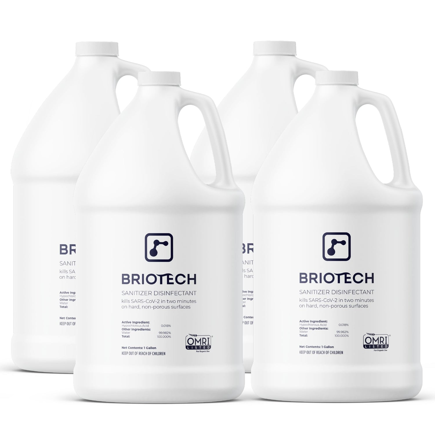 BRIOTECH Sanitizer Disinfectant Hypochlorous, Kill 99.99% of Viruses & Bacteria, Control Mold, Eliminate Odor, Gentle for Nursery & Play Rooms, Food Contact Surface Sanitizer, 1 Gallon Refill (4 Pack)