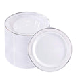 - IDEAL FOR ALL KINDS OF PARTIES: High quality plastic plates with silver rim are very suitable for your birthday,Thanksgiving , baby, Christmas, graduation party or wedding, and more.Impressing friends with elegant disposable plates.