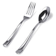 BUCLA 200 Pieces Silver Plastic Silverware - Heavy Duty Disposable Cutlery set - 100 Silver Plastic Forks, 100 Disposable Spoons for Catering, Parties, Dinners, Weddings and Christmas
