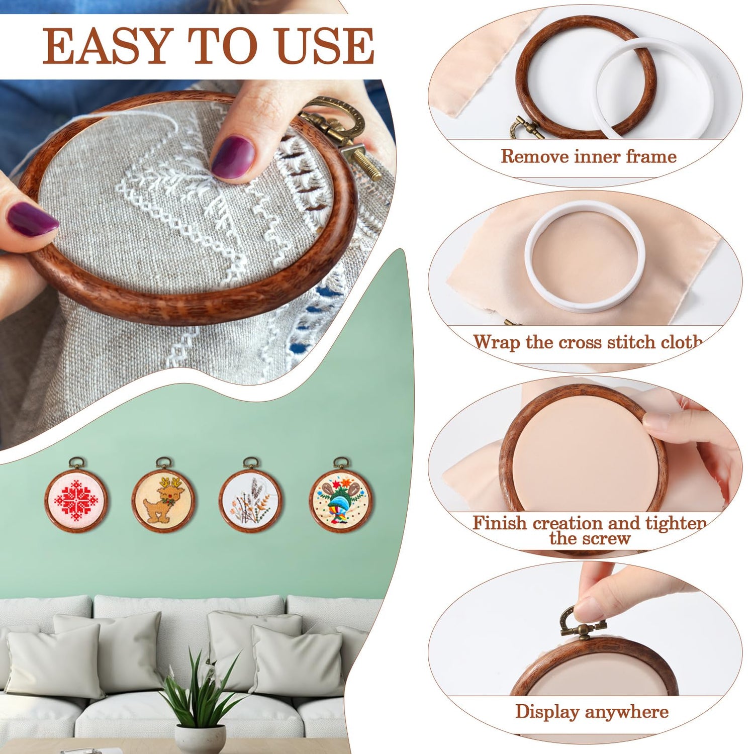 - Easy to Use and Decorative: these cross stitch ornament frames are user friendly and ideal for different levels of embroiderer, with a size of about 3.54 inches/ 9 cm in outer diameter, and about 3 inches/ 7.6 cm in inner diameter, they are easy to handle and convenient for assorted embroidery projects; Put the cloth in the hoop and cover it to fix the fabric, the design provides an effortless fit for many fabrics, making embroidery a straightforward process