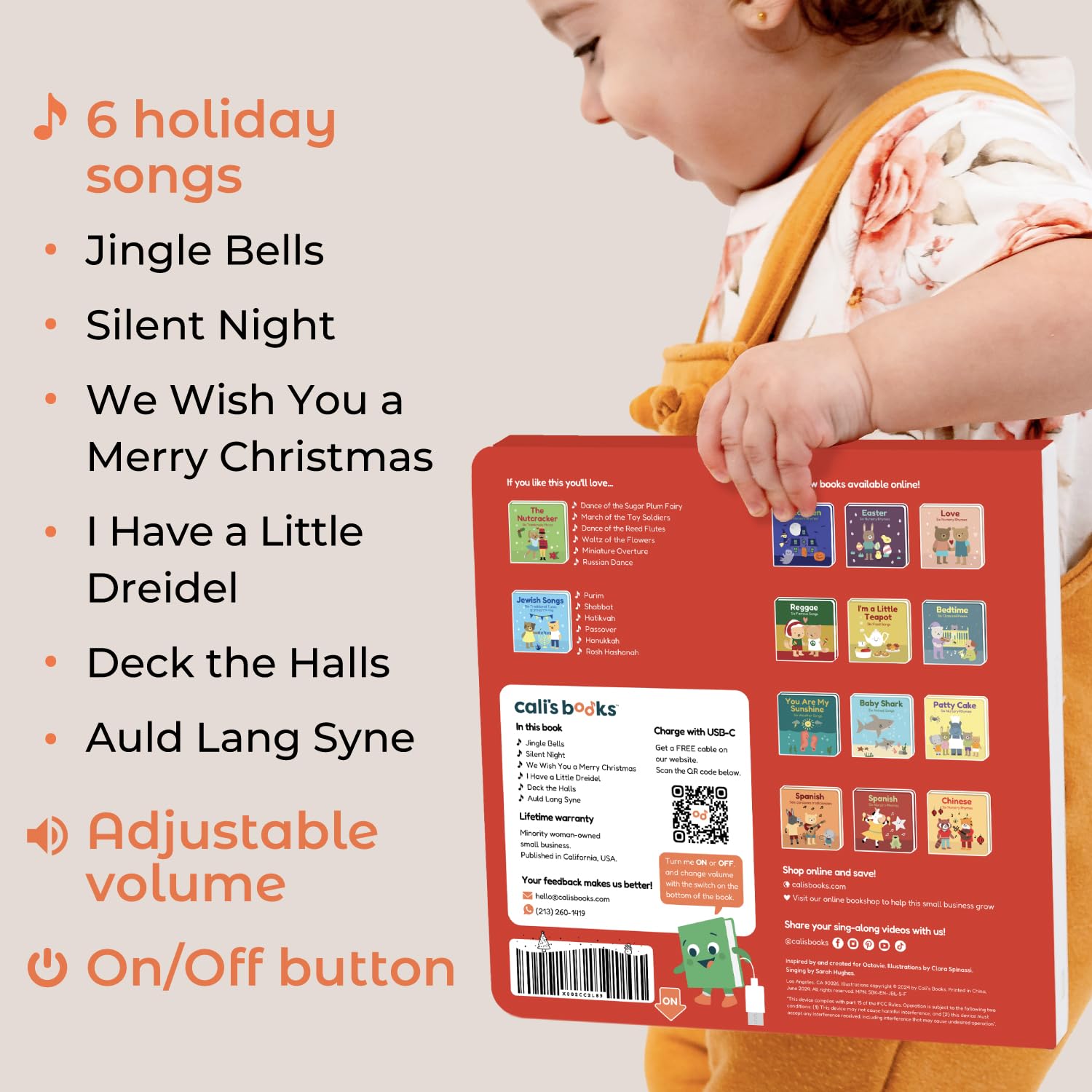 Cali's Books Jingle Bells USB-C Rechargeable Christmas Musical Book - Toddler Interactive Christmas Books for Kids and Babies - Sound Books for Toddlers 1-3 - Baby