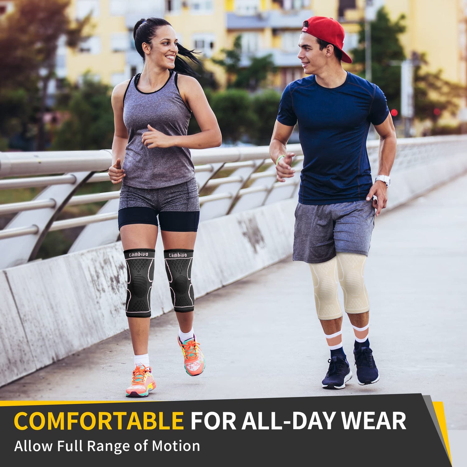 - Benefits - CAMBIVO knee sleeves are featured with special 3D knitting technology that is effective in providing stable pressures to stabilize and support your knee and help to relieve arthritis pain; The knee brace also keep your knee warm and reduce stiffness; they are the best companion for your workouts and daily activities