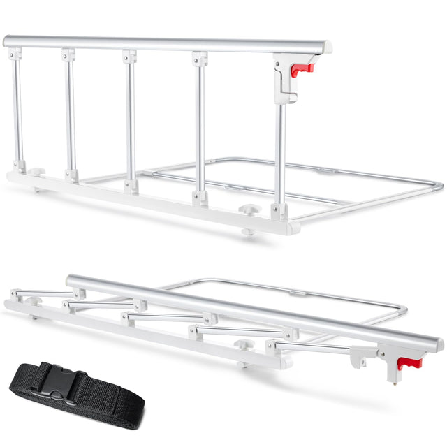- Durable & Stable Construction - The bed rail features a strong steel and aluminum frame, adding an adjustable fastening strap to improve the ability to firmly fix the bottom frame under the mattress to the bedstead, providing greater safety in getting in and out of bed without assistance.