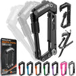 - Multiple Functions: The heavy duty carabiner multitool caters to various outdoor and everyday carry, combining a folding pocket knife, serrated knife, rope cutter, slotted screwdriver, bottle opener, can opener, ruler, in one pouch package.