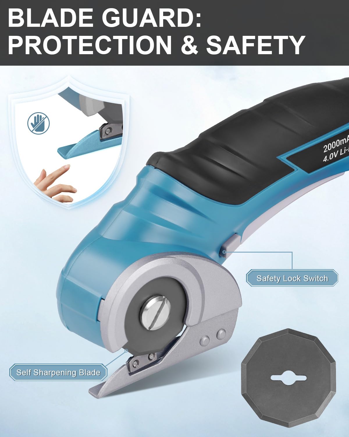 - ENHANCED SAFETY FEATURE - AMZBUY electric scissors, designed for cutting cardboard, come with a side-mounted safety lock that secures the blades when not in use, minimizing the risk of accidental injuries. They require both the trigger and the lock-out switch to be pressed simultaneously for operation, ensuring safer use