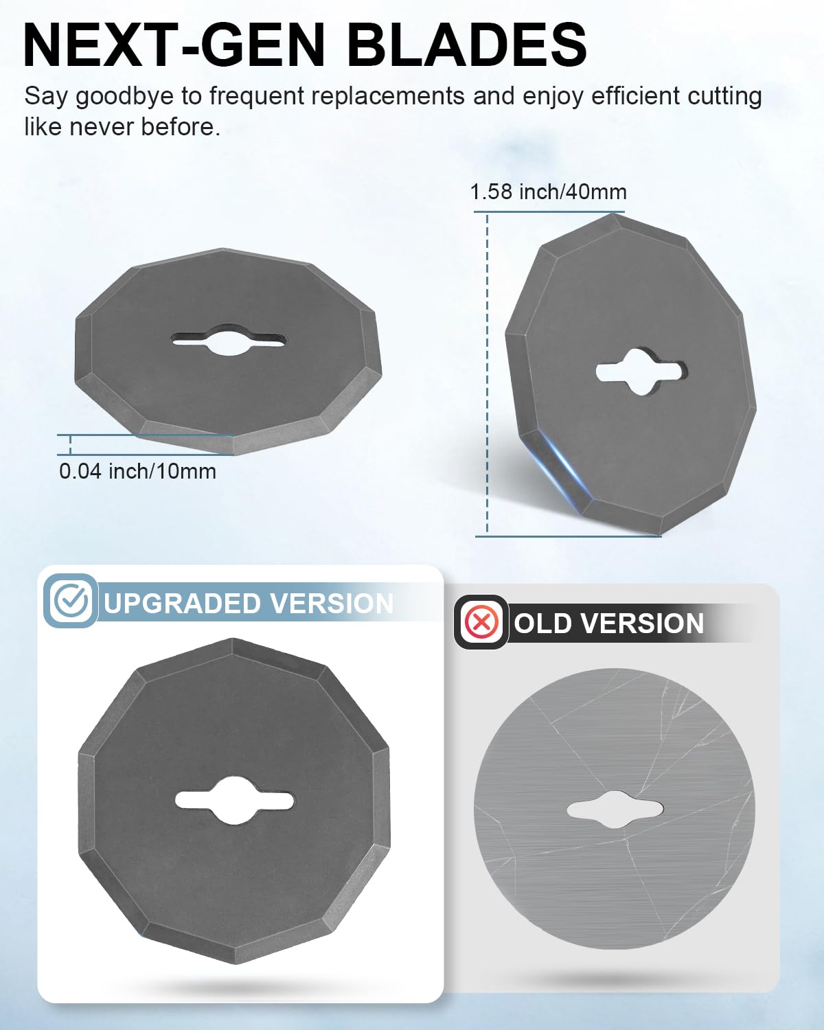 - SELF-SHARPENING BLADE & DURABILITY - The rotary cutter’s self-sharpening octagonal blade maintains its sharpness over time, extending its lifespan and reducing the need for frequent sharpening. For best results, cut carpets with the plush side down and keep the blade guard area clean for precise and smooth cuts. This long-lasting electric cardboard cutter is ideal for daily use and DIY projects