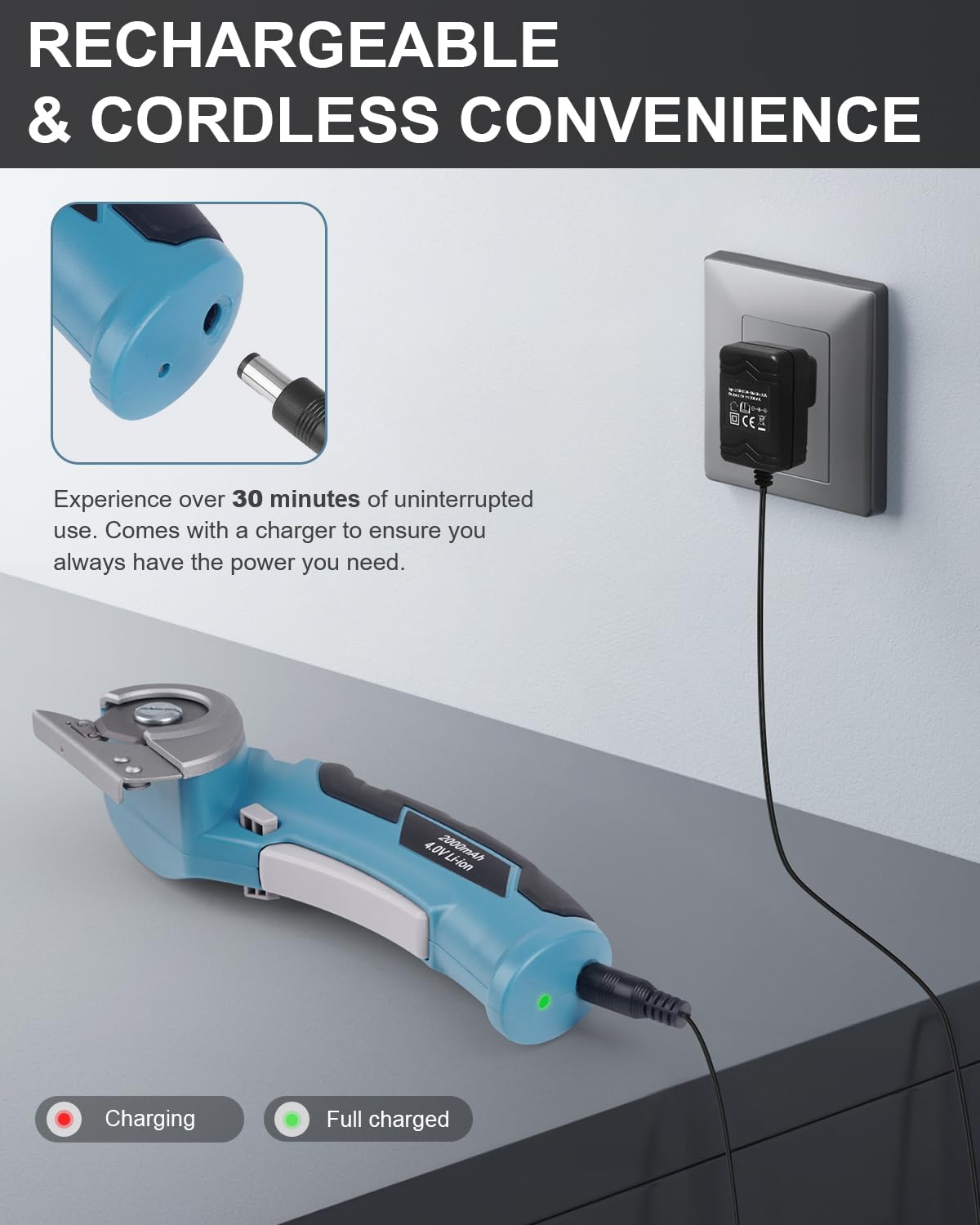 - RECHARGEABLE & VERSATILE - Constructed from high-quality materials (stainless steel blade; leather, plastic handle), these compact and lightweight (only 0.86 lbs) cordless electric scissors are built to last, providing long-term durability without fatigue. Tips: During charging, the tail indicator light is red, turning green when fully charged