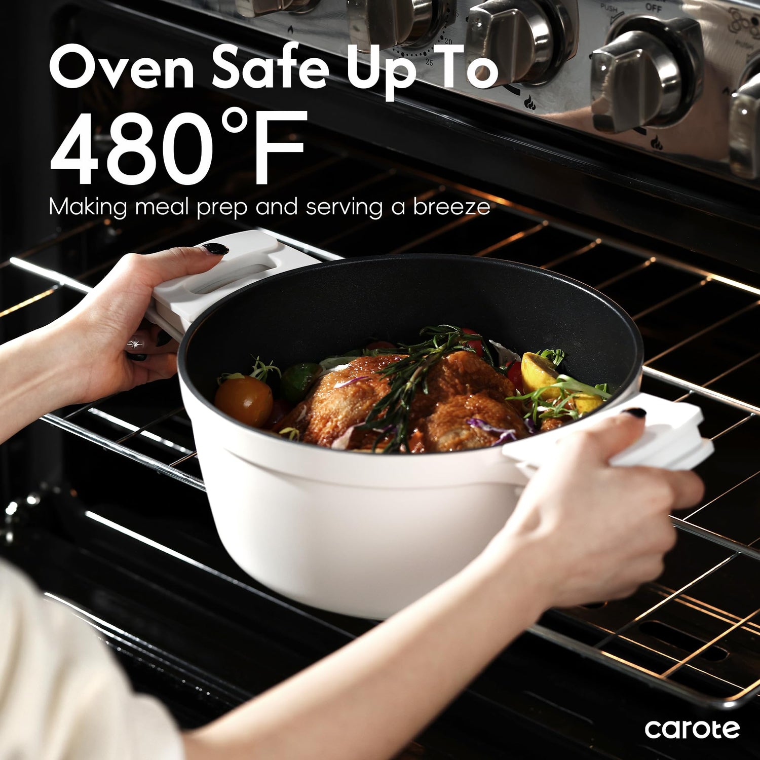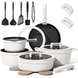 CAROTE 22pcs Pots and Pans Set Non Stick, Detachable Handle Cookware Set White, RV Cooking Set, Dishwasher/Oven/Fridge Safe, Pot and Pan Set, Induction Cookware