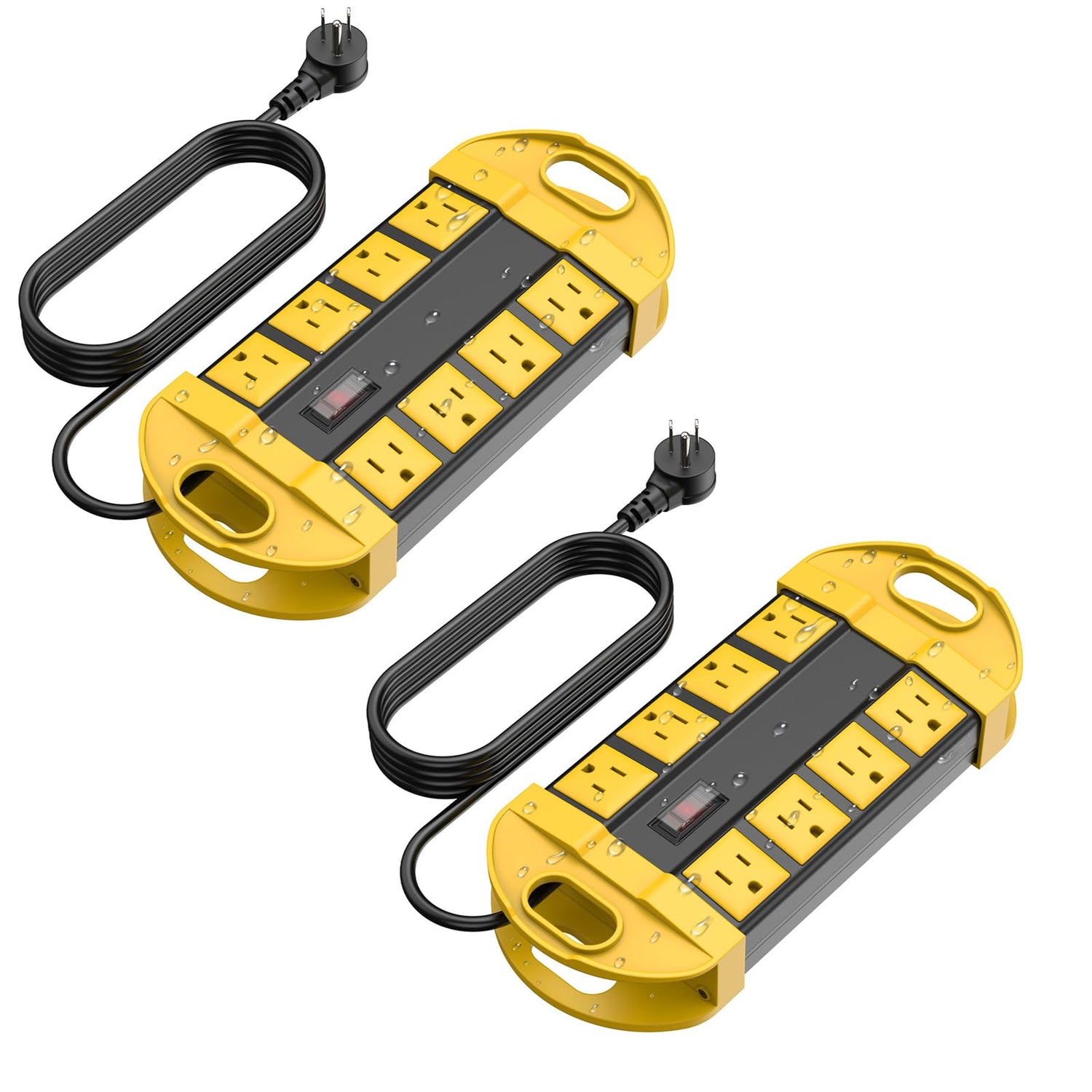 CCCEI 2 Outdoor Power Strips Weatherproof with 8 Plug, Waterproof Extension Cord with Multiple Outlets, Christmas Exterior Garden Yard Surge Protector 6FT, Yellow.