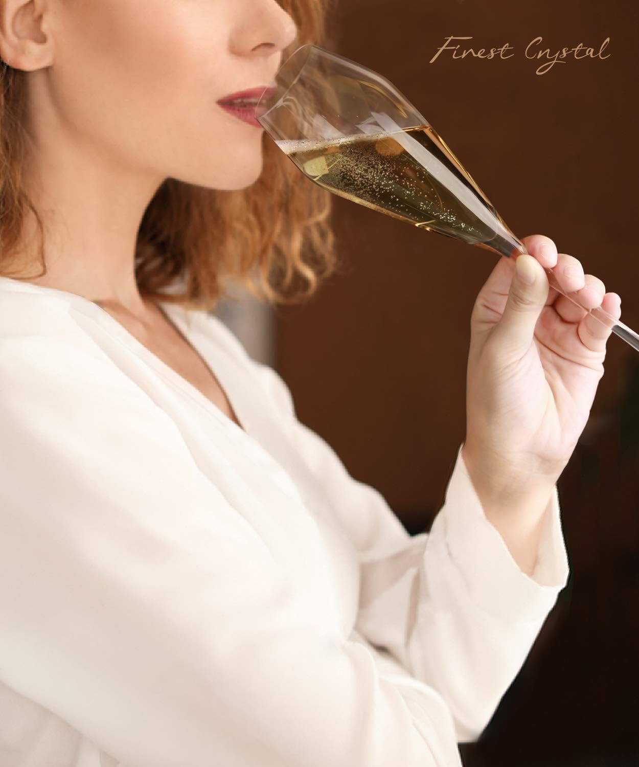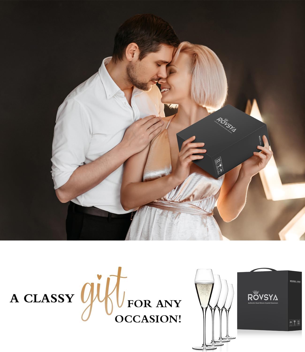 - ELEGANT CHAMPAGNE FLUTES THAT MAKE YOU FALL IN LOVE: Elegant crystal champagne glasses are like candelabras in the darkness of the night, allowing you to find your one and only soulmate in the world. Imagine yourself intoxicated by the swirl of champagne, listening to the lilting melody of “ring” and raising your glass in celebration