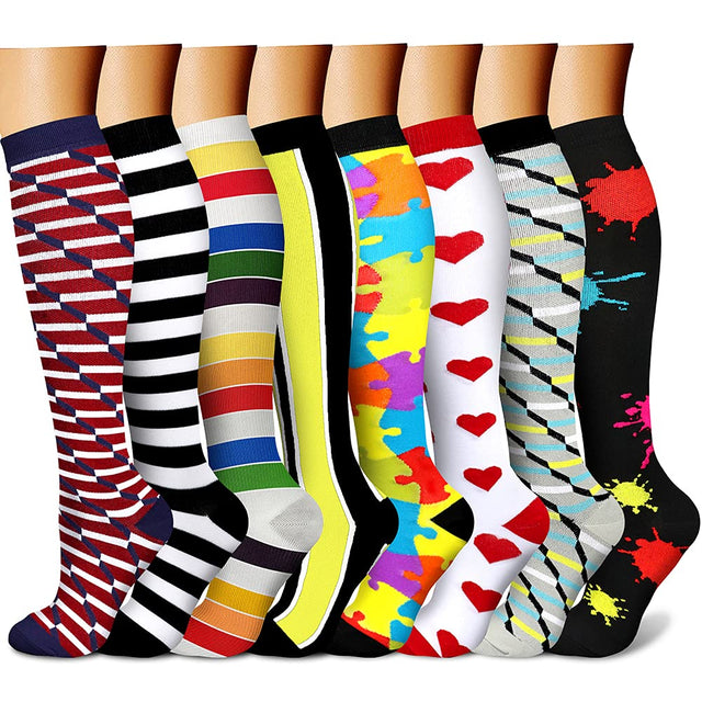 - MULTICOLOR COMBO - You get a color combination of your choice. Perfect for a whole week without daily wash. You are getting an amazing offer to keep your feet stay with optimal compression all the time (See the 7th image for the Size Chart)! High quality stitched & Easy to get on even though they are compression socks!