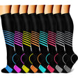 - MULTICOLOR COMBO - You get a color combination of your choice. Perfect for a whole week without daily wash. You are getting an amazing offer to keep your feet stay with optimal compression all the time (See the 7th image for the Size Chart)! High quality stitched & Easy to get on even though they are compression socks!
