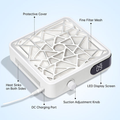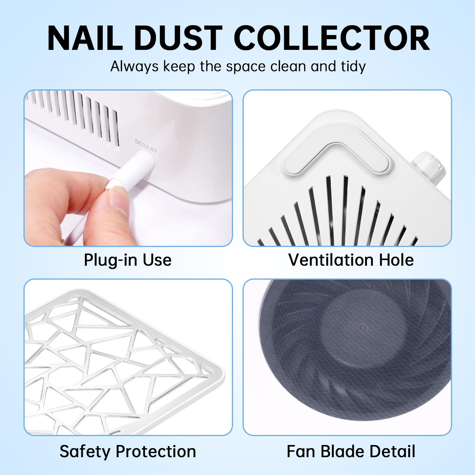 - Professional Dust Collector: This plug-in nail dust collector offers intense suction that captures even the finest dust particles, promoting a cleaner workspace and reducing inhalation risks during manicures. Giving you and your customer a breathing environment while filing or polishing nails. A must-have nail accessory for personal use or use in the nail salon.