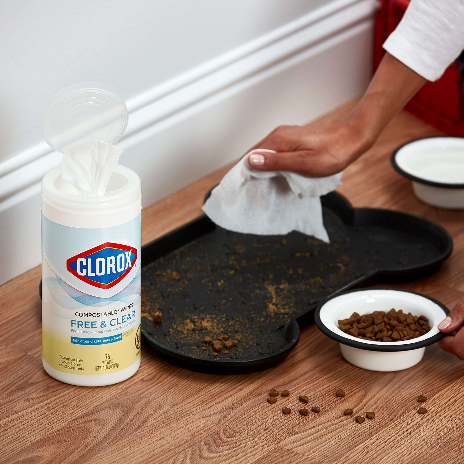 Details: The clear solution for a clean home. Safe around kids, pets and food contact surfaces when used as directed, Clorox Free & Clear Cleaning Wipes are formulated without dyes, bleach or ammonia yet deliver a powerful clean that’s gentle on surfaces. These lemon scented Clorox wipes pick up dirt. These cleaning wipes are tough on grease and can cut through grime on a variety of hard surfaces like acrylic, sealed fiberglass, sealed granite, finished hardwood and vinyl. The perfect addition to your household cleaning supplies, Clorox Cleaning Wipes meet the US EPA’s Safer Choice safer product standards. and made from plant based fibers. Grab these easy, accessible cleaning wipes for everyday cleanups and tough messes. **When used as directed