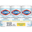Clorox Free & Clear Compostable Cleaning Wipes, Light Lemon Scent, 75 Count, Pack of 3 (Pack May Vary)