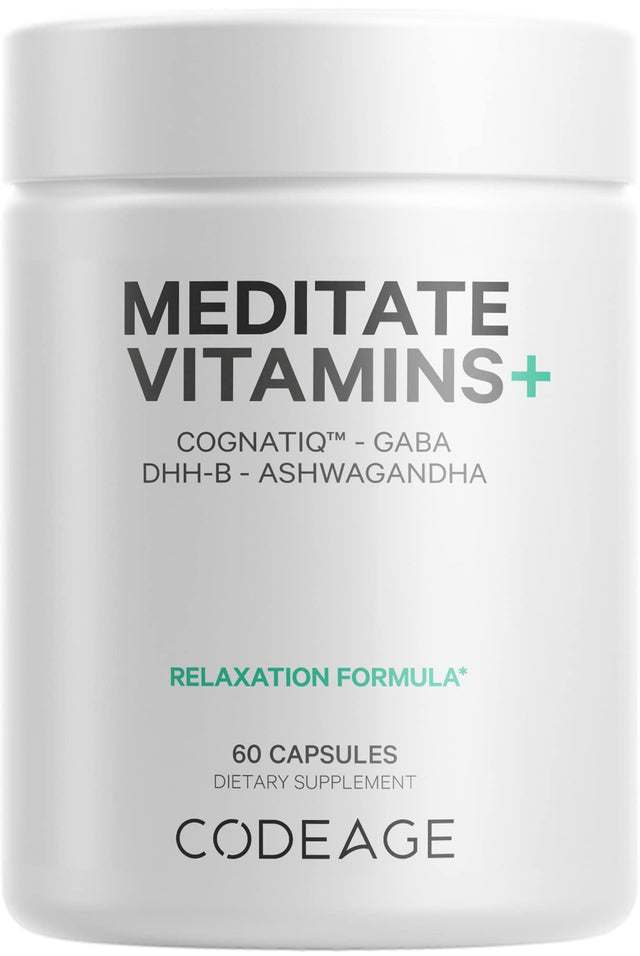 - Comprehensive Nutrient Blend: Codeage Meditate Vitamins supplement is formulated with CognatiQ, a proprietary ingredient derived from coffee fruit clinically shown to support levels of a key neuroprotein (BDNF).* This formula also includes DHH-B from magnolia, GABA, and ashwagandha.