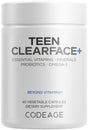 Codeage Teen Clearface Adolescent Face, Skin & Pimples, Vitamins A, C, D3, E, Pantothenic Acid, Niacin, Zinc Supplement Teenagers, Probiotics, L-Lysine, Omega-3, Oily Skin, Pores, Spots - 60 Capsules