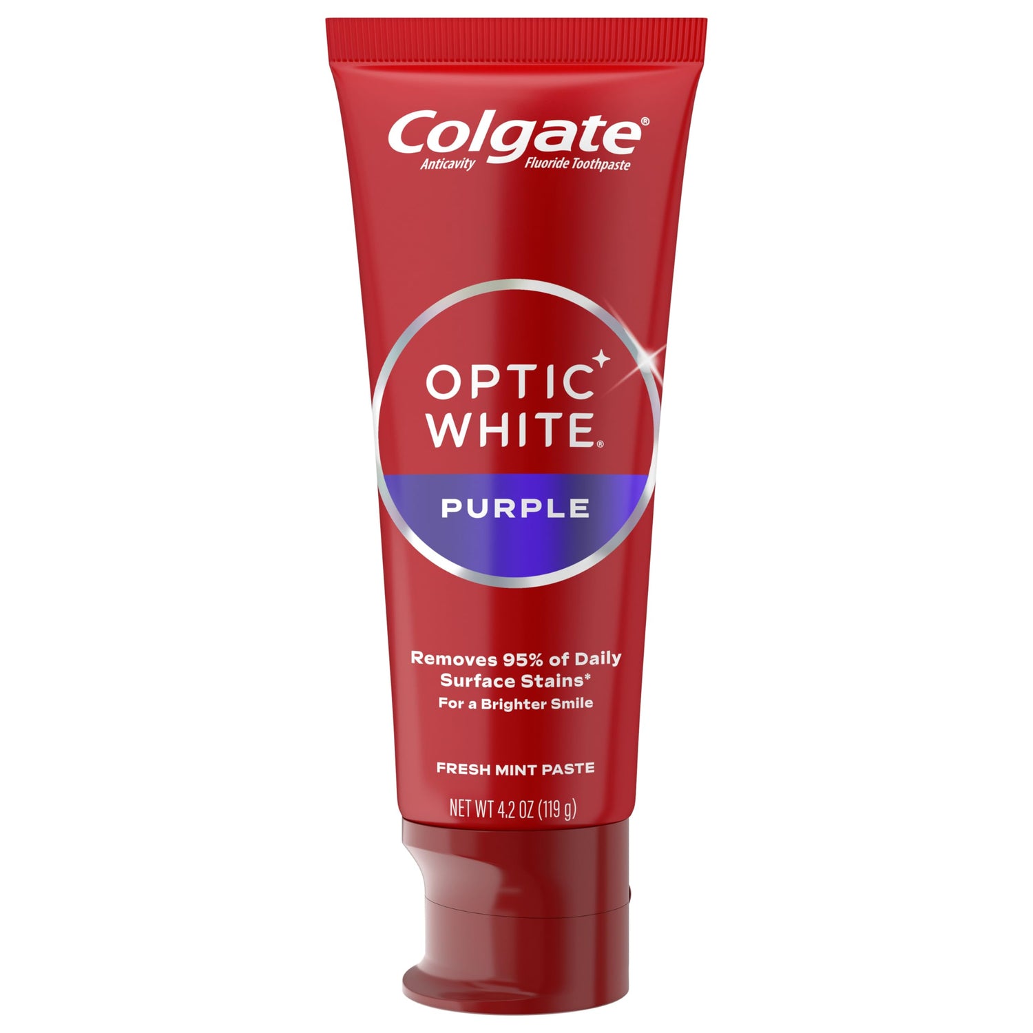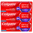 - Includes three (3) 4.2 oz tubes of Colgate Optic White Purple Toothpaste for Teeth Whitening, Fluoride Toothpaste