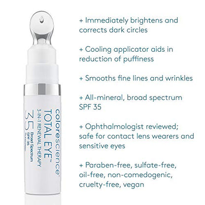 Colorescience Total Eye 3-in-1 Anti-Aging Renewal Therapy for Wrinkles & Dark Circles, SPF 35, Fair