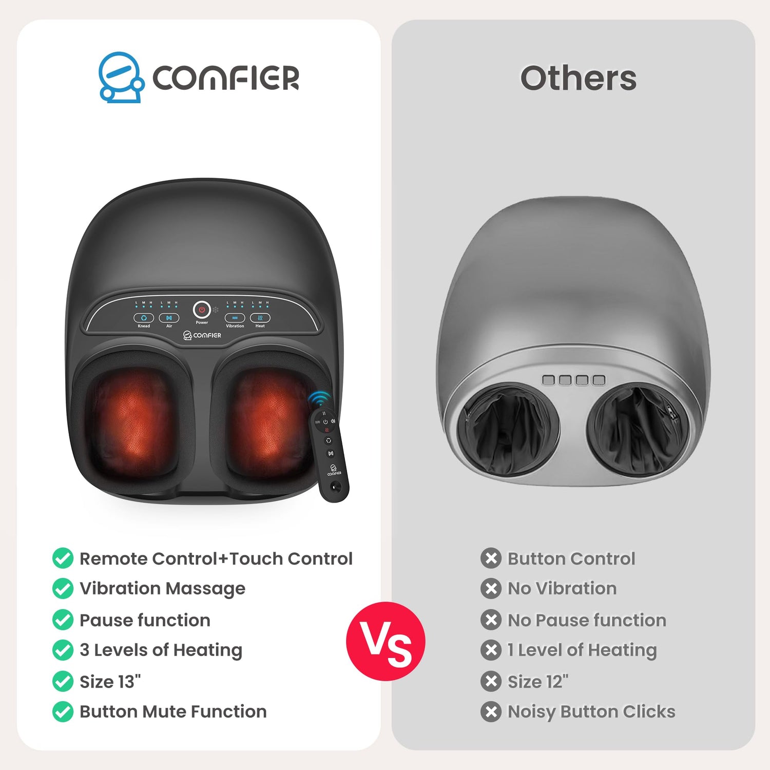 - Two Convenient Control Methods: Enjoy easy operation with the COMFIER Foot Massager’s remote and touch controls. The remote allows you to manage your massage session without bending over, making it especially helpful for those with back pain or limited mobility. Alternatively, the touch controls bring a more modern, stylish touch to the experience. FSA or HSA eligible.