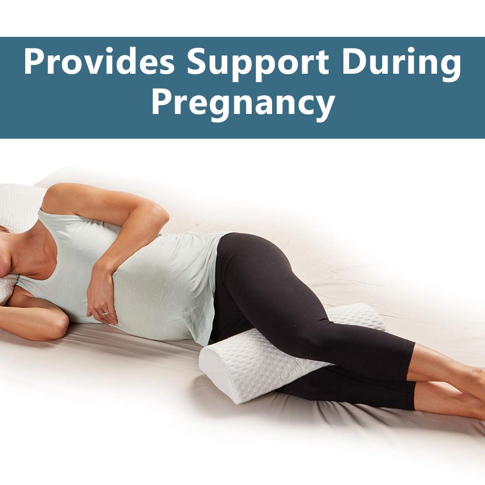 - Multi-functional Half Moon Positioner Pillow - Perfect for back and side sleepers to provide lower back pain, hip pain, leg pain and joint pain relief at night. Great to use as a knee pillow, leg pillow, lumbar pillow, foot pillow, neck roll pillow, wedge pillow, between ankles, between legs, under knees, lower back support and pregnancy body pillow..