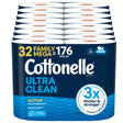 Cottonelle Ultra Clean Toilet Paper with Active CleaningRipples Texture, Strong Bath Tissue, 32 Family Mega Rolls = 176 Regular Rolls (8 Packs of 4)