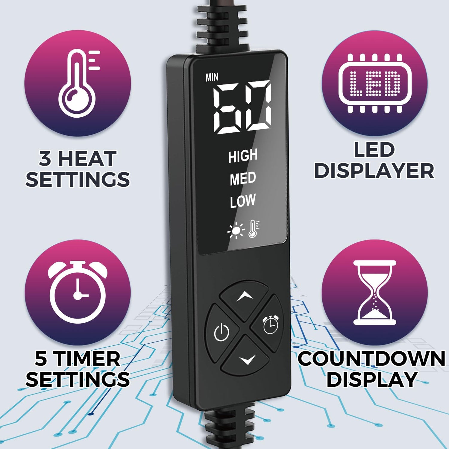 - Personalized Heat Therapy: Our heating pad for golfer elbow features an easy-to-use LED display hand controller. Customize your desired temperature and select from 5 timer settings for optimal warmth and heat therapy. However, it's important to note that you should NEVER SLEEP while wearing the elbow wrap, even with the auto-off timer set. Prioritize your safety and well-being during heat therapy sessions.