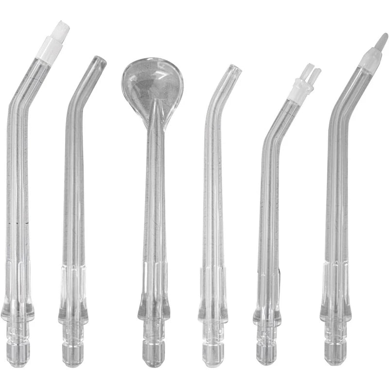 - Carry on Size: Cordless and lightweight, this water teeth cleaner picks is ideal for travel, 5 interchangeable jet tips included for your whole family. The 360°rotatable nozzle allows you to easily clean areas that are difficult to reach and prevents tooth decay,dental plaque,dental calculus,gingival bleeding and dental
