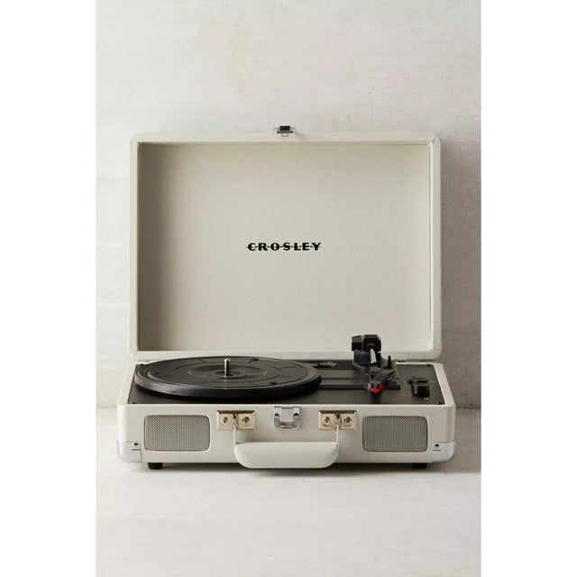 Join Crosley's mission to bring analog music to the masses with the Voyager three-speed vinyl record player. The clean, vintage-inspired aesthetic fits into any space, while the lightweight design allows this record player to travel “further than anyone, or anything in history.” Spin 33 1/3, 45, or 78 RPM records or launch the built-in Bluetooth receiver to transmit your digital music wirelessly through the turntable’s stereo speakers. Discover the RCA outputs on the back that allow you to easily plug into your existing solar music system or bigger speakers to add propulsion to any party. Drop the needle on a reissue of the golden record, probe the adjustable pitch control knob to dial in the speed, and prepare for blast off!