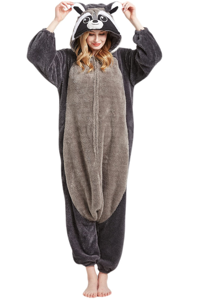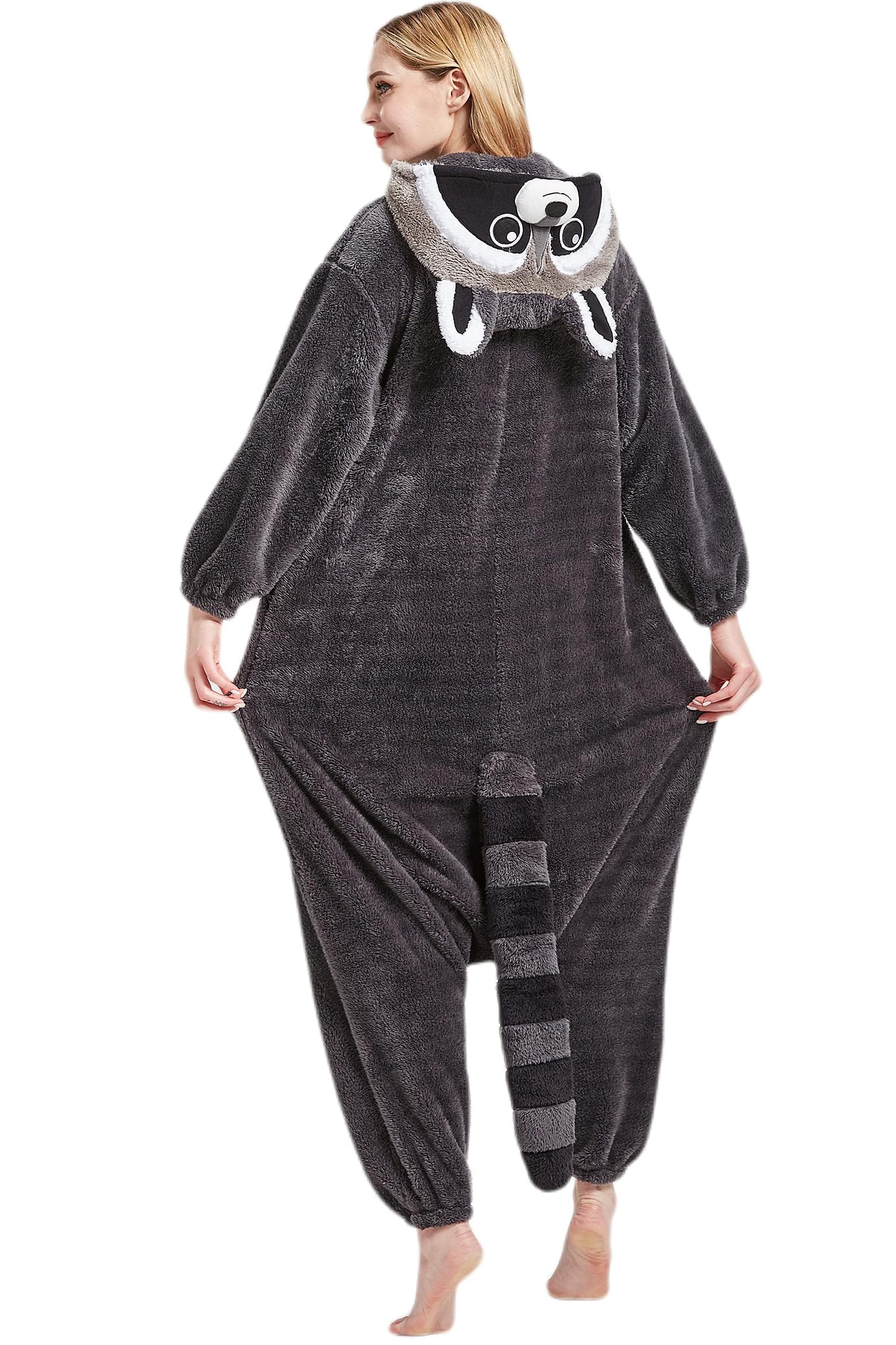 DarkCom Onesie Christmas Pajamas Adult Animal Halloween Costume Cosplay Gray Raccoon One Piece Unisex Homewear Polar Fleece Sleepwear X-Large