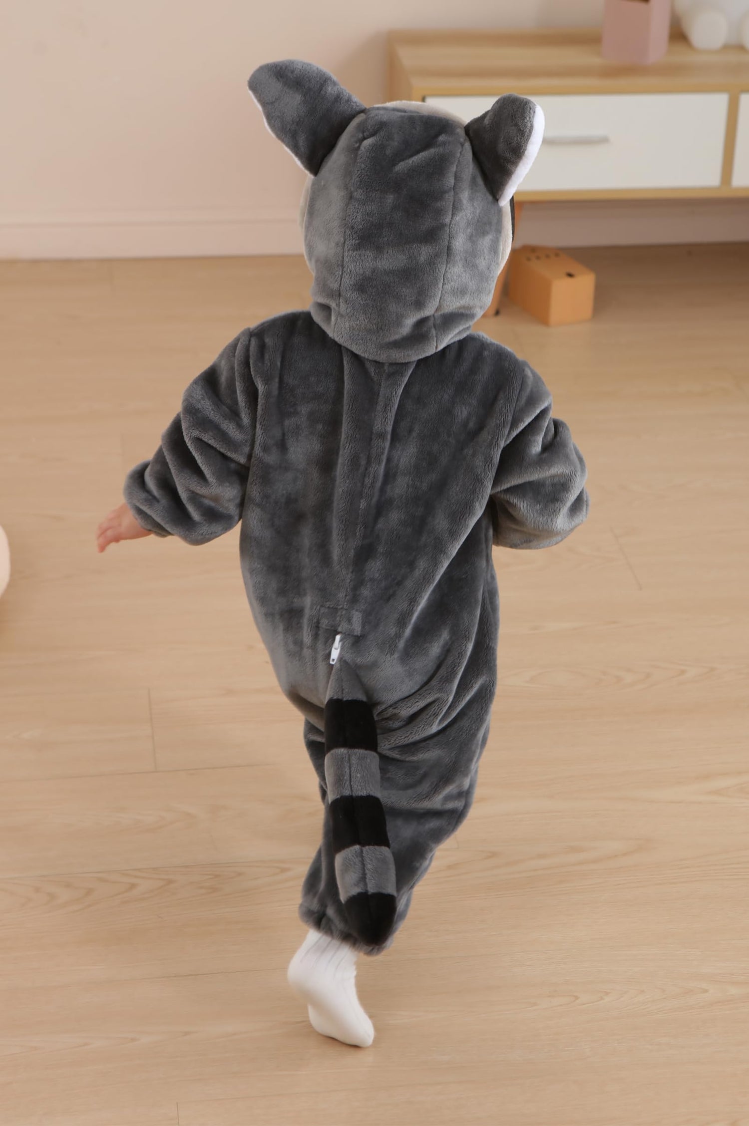 DarkCom Unisex Baby Animal Onesie Toddler Hooded Romper Halloween Cosplay Grey Raccoon Costumes Kids' Christmas Gifts 6-12 Months is backordered and will ship as soon as it is back in stock.