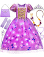 - Light Up Princess Dress - no need to install, put it on immediately to make your girl a dreamy princess. Our high-quality product set includes a glowing princess dress, braids, princess bag, necklace, bracelet, gloves, princess crown and magic wand, which will bring more fun and confidence to children.