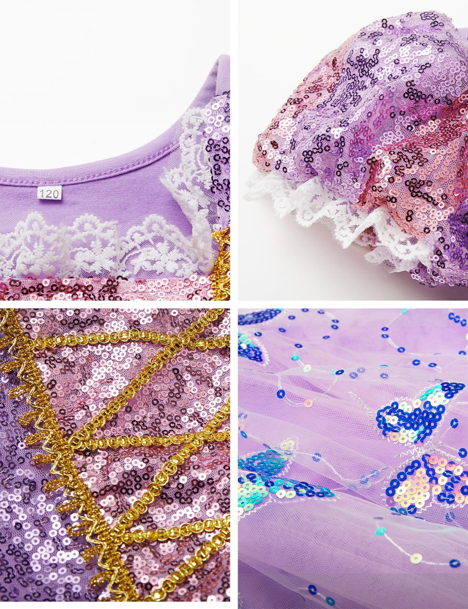 - Gorgeous Decoration - the skirt adopts a built-in LED light string design, which is embedded in the fabric, so there is no need for complicated installation. The skirt is designed with shiny beads and butterfly patterns, the chest is decorated with gold braids, The neckline, sleeves and hem are all decorated with lace, and the dreamy purple tones make the overall design more exquisite and fairy-tale.