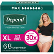 - DEPEND FRESH PROTECTION: 68 count of Depend Fresh Protection Adult Incontinence & Postpartum Bladder Leak Underwear for Women (2 packs of 34), size extra-large (45–54" waist)