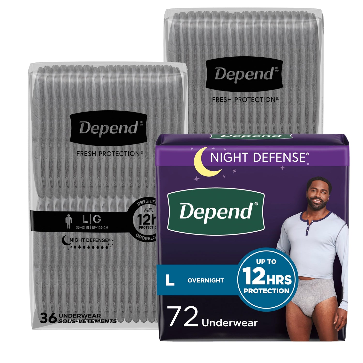 - Depend Night Defense Adult Incontinence Underwear for Men, large (35–43" waist), 80 count