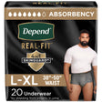 - Depend Real Fit Adult Incontinence Underwear for Men, maximum absorbency, size large/extra-large (38-50" waist), grey color, 20 count