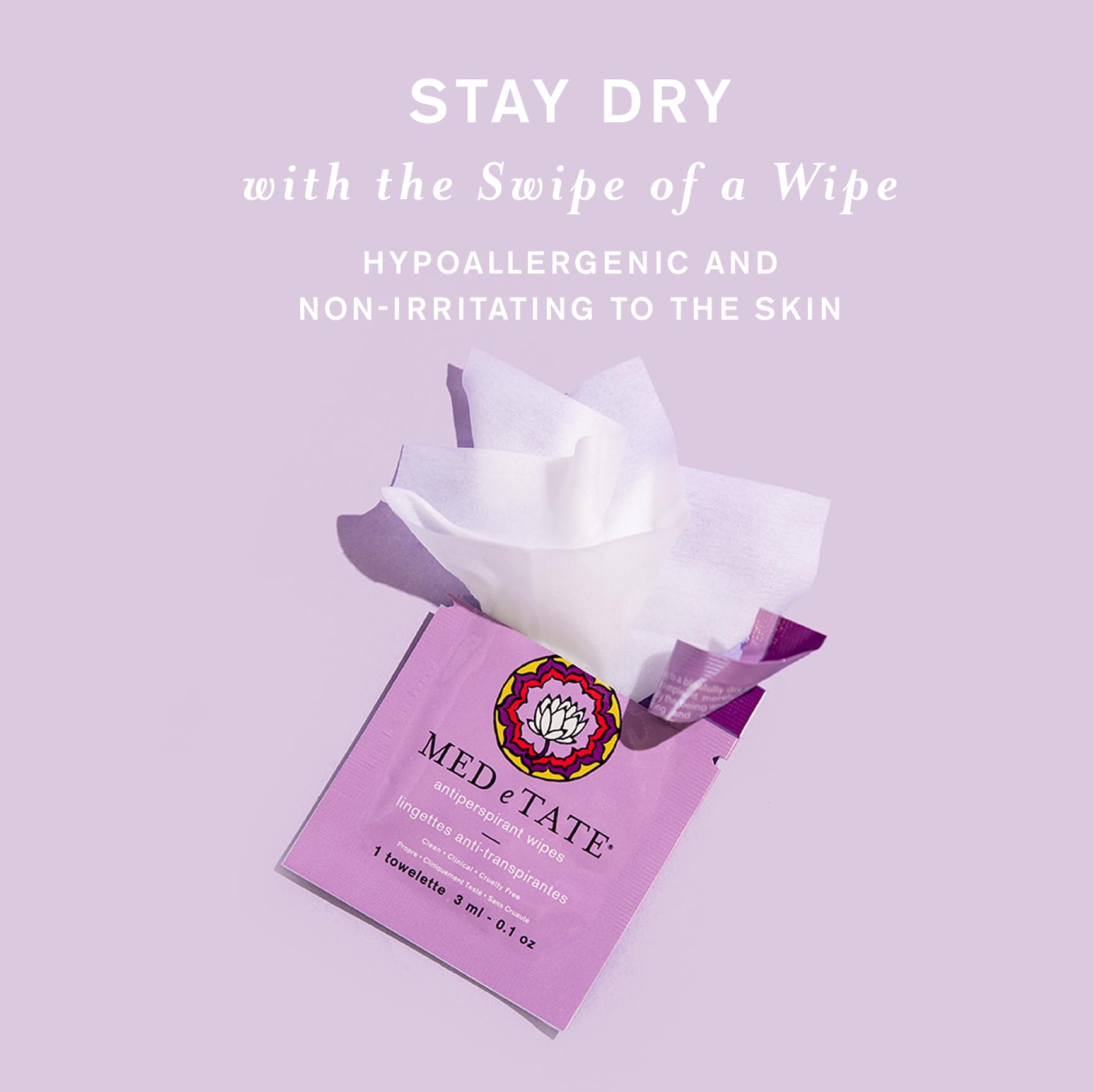 - WHAT IT IS: Patented Antiperspirant Therapy: This advanced formula, enriched with botanicals, ensures lasting dryness and comfort. Hypoallergenic Deodorant: Free from common allergens and harsh chemicals, this deodorant is gentle on sensitive skin and suitable for those with sensitivities. Effortless Application: Simply swipe a wipe to experience effective dryness. Convenient Usage: Apply only a few times per week for optimal results. Individually Wrapped: Perfect for on-the-go use and travel, providing convenience and practicality wherever you are.