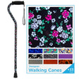 Designer Walking Cane with Offset Handle, Lightweight Adjustable Walking Stick with Carrying Strap,"Black w/Blue and Pink Flowers" Design, Black W/Blue and Pink Flowers is backordered and will ship as soon as it is back in stock.