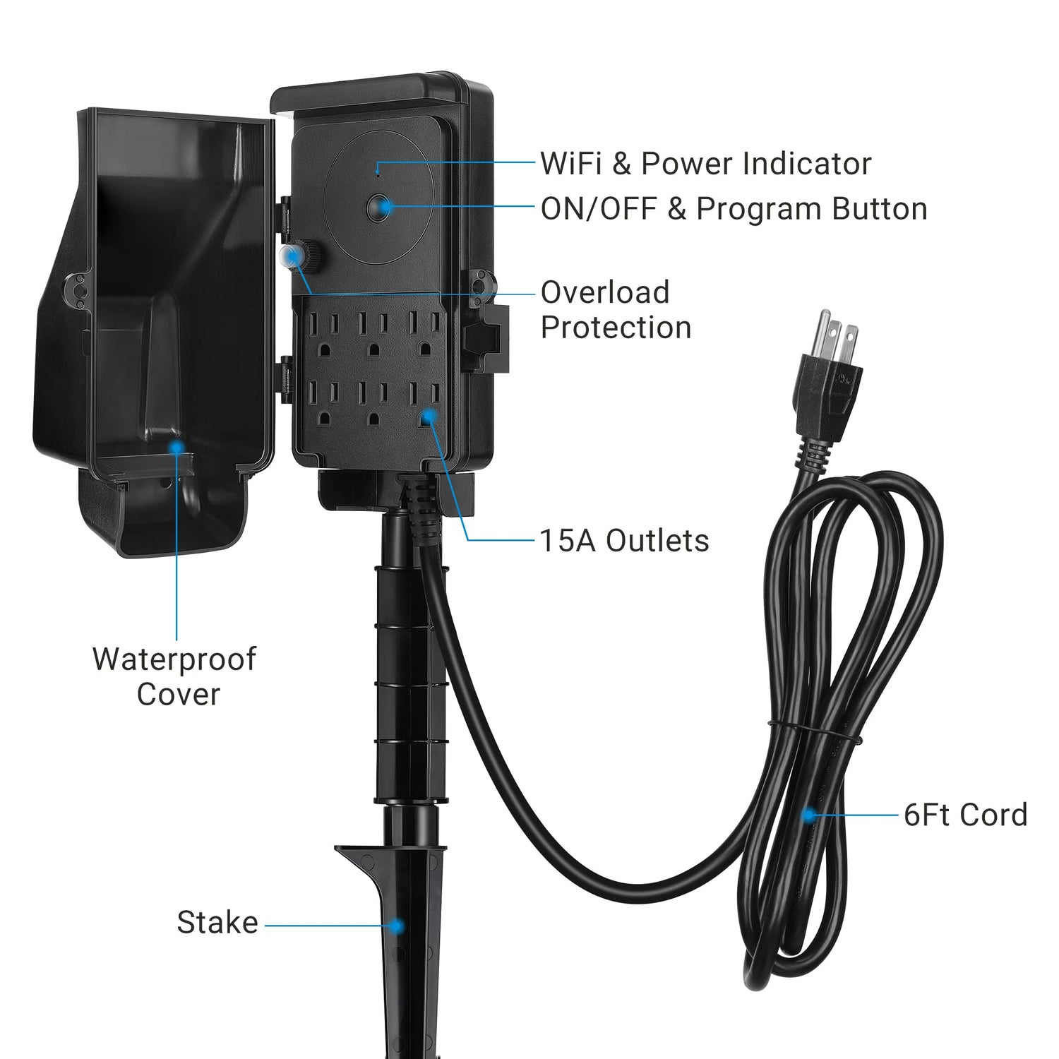 DEWENWILS WiFi Smart Yard Stake Plug with 6 Outlets, Voice Control, Waterproof Power Stake Timer with 6Ft Cord, Alexa&Google Assistant Compatible, 1875W/15A, for Halloween/Christmas Decoration Lights is backordered and will ship as soon as it is back in stock.