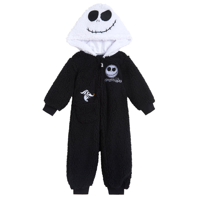Disney Nightmare Before Christmas Jack Skellington Newborn Baby Boys Cozy Sherpa Zip Up Cosplay Coverall Black 3-6 Months