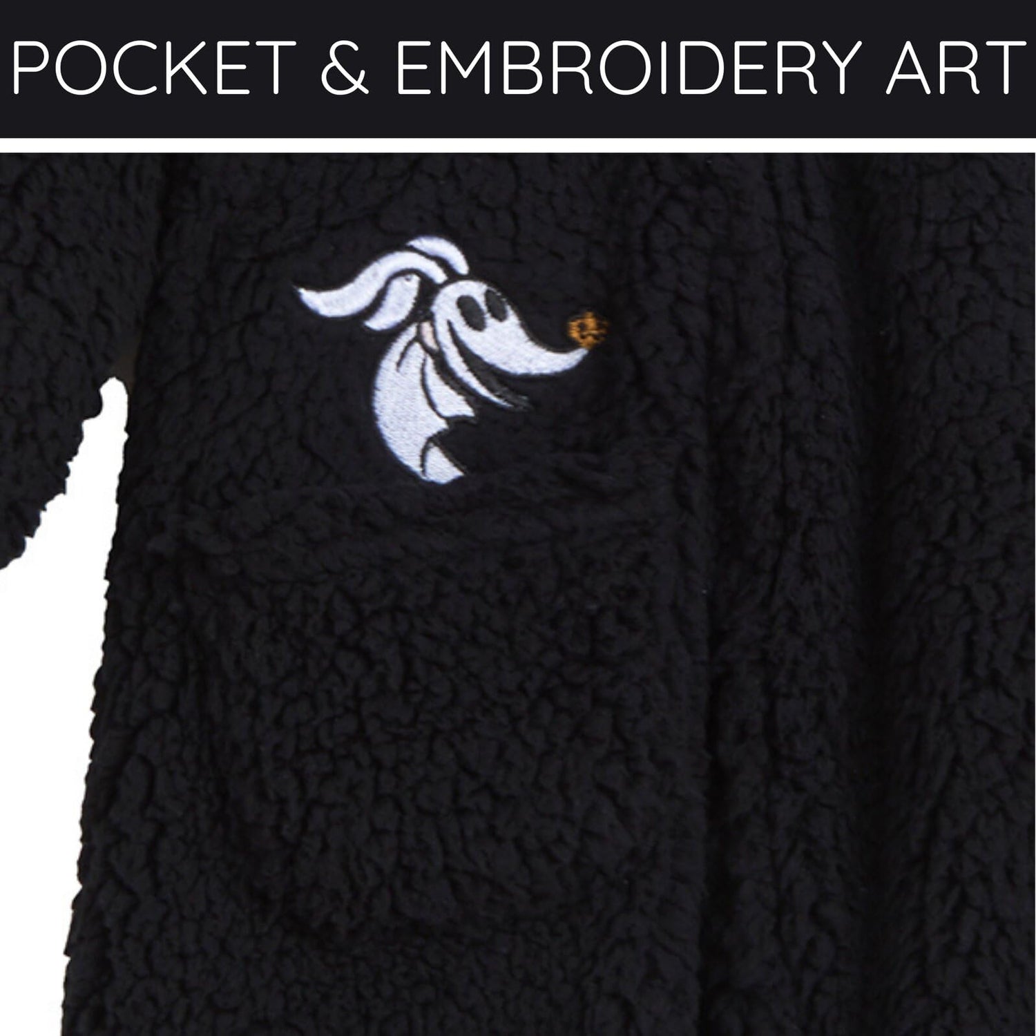 - Dress-up cosplay design; Ribbed sleeve cuffs and ankle cuffs for a better fit; Zip up front for easy dressing; Comfortable hood lining; Comfy sherpa material; Awesome embroidery art