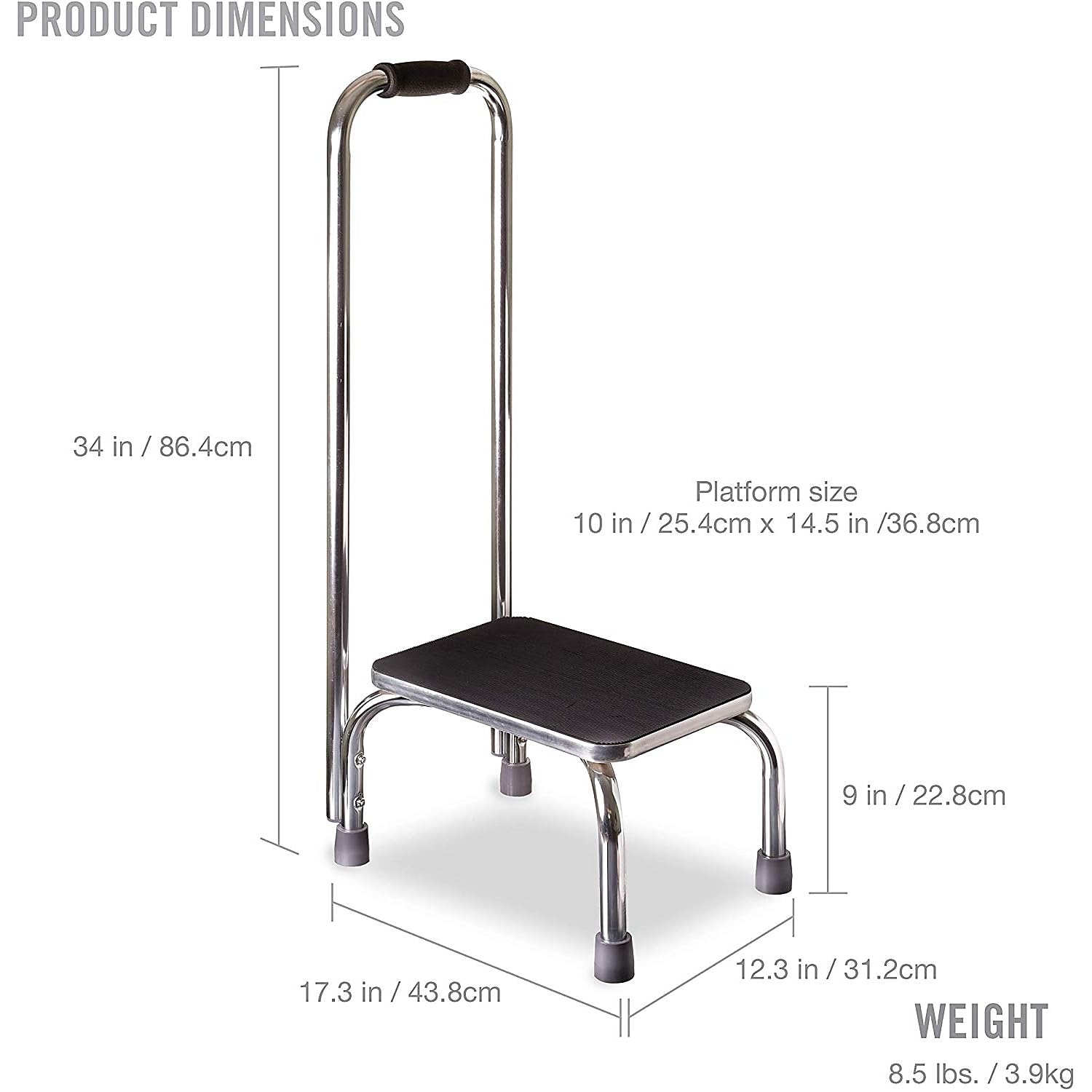 DMI Step Stool with Handle and Non Skid Rubber Platform, Lightweight and Sturdy Stool for Seniors, Adults and Children, Holds up to 300 Pounds with 9.5 Inch Step Up, 17.3"D x 12.3"W x 34"H, Chrome