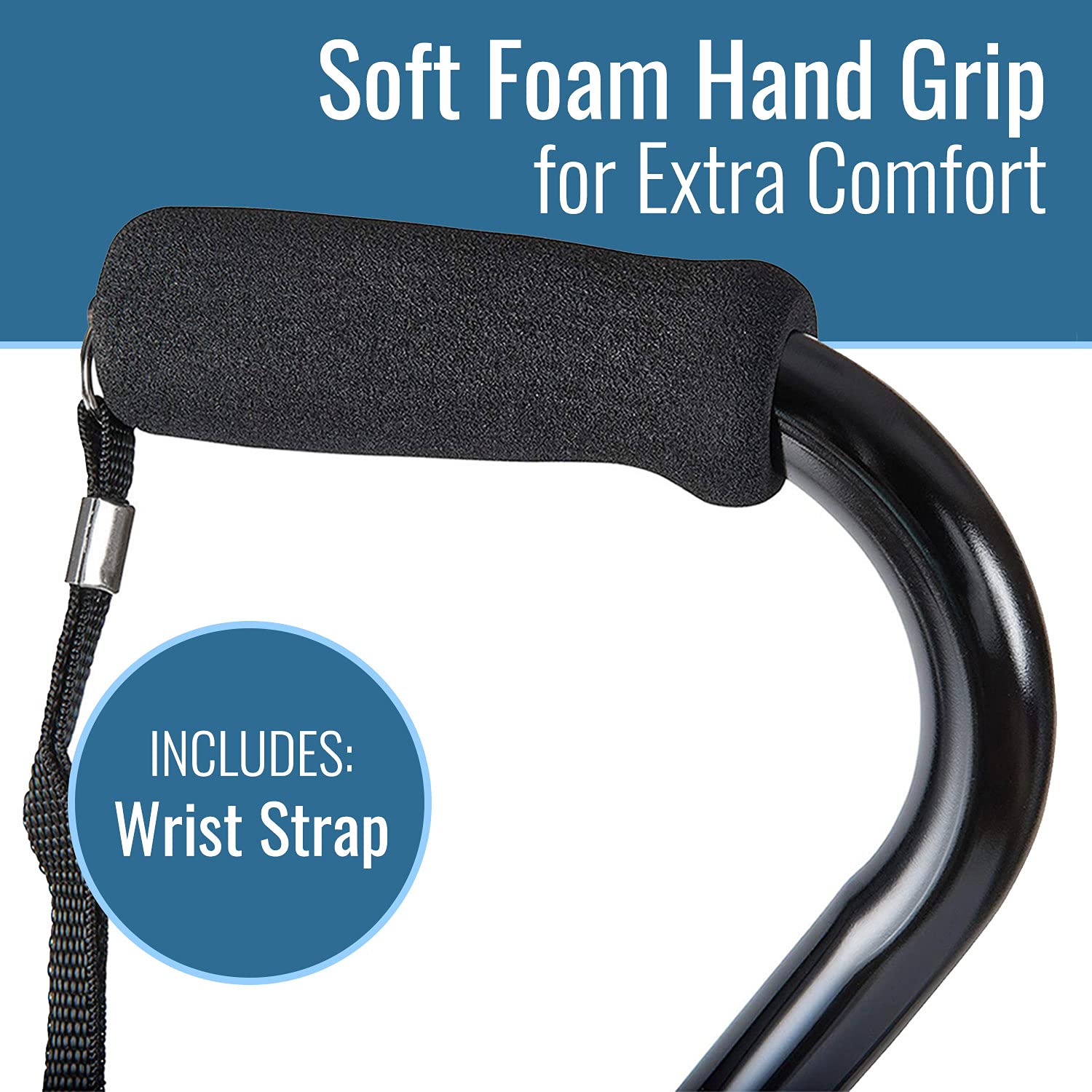 - CANE WITH ERGONOMIC SOFT OFFSET HANDLE AND WRIST STRAP help to secure the cane to avoid drops making it comfortable to grip even for long periods, helping to reduce hand fatigue and soreness