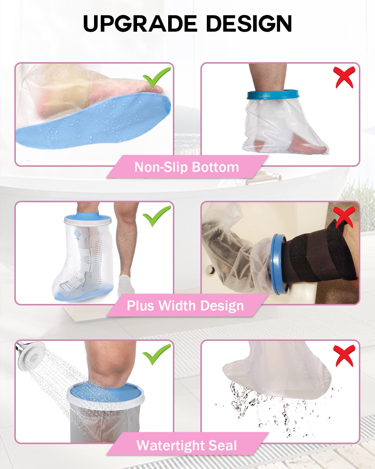 - 🛀REUSABLE&DURABLE: Soft Medical Grade material, no stimulation to the skin. Durable material makes the shower boot cover reusable for a long time and not easy to age. After each use, only need to hang it to dry.