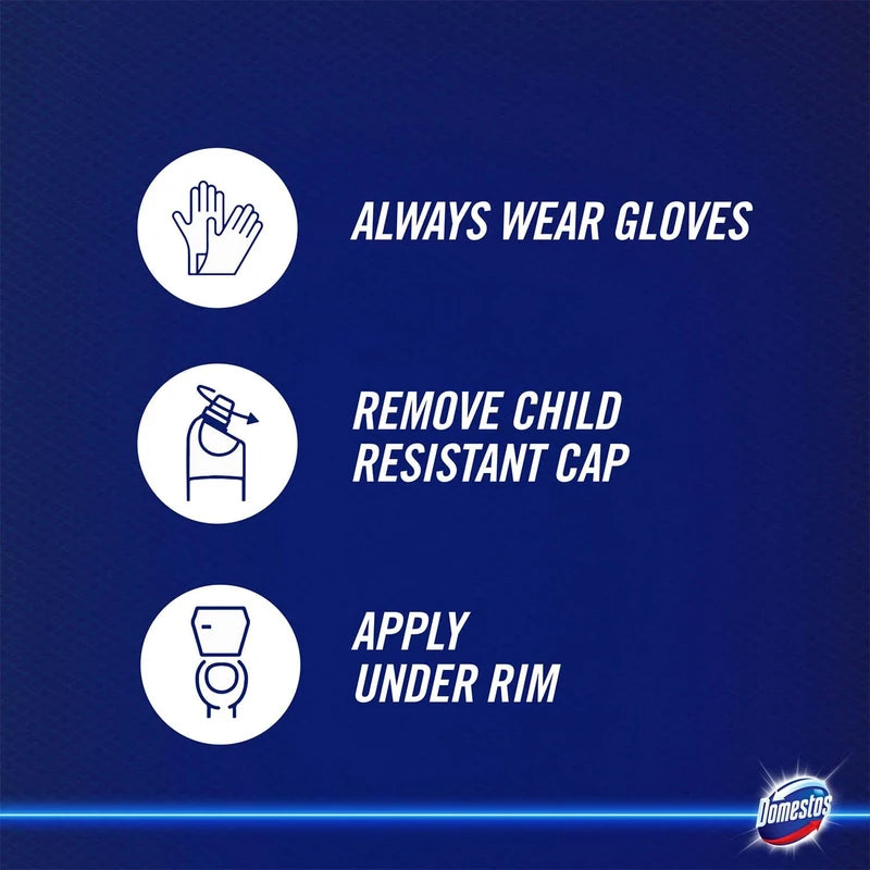 - Domestos toilet gel is up to 3x thicker than the market-leading toilet limescale remover