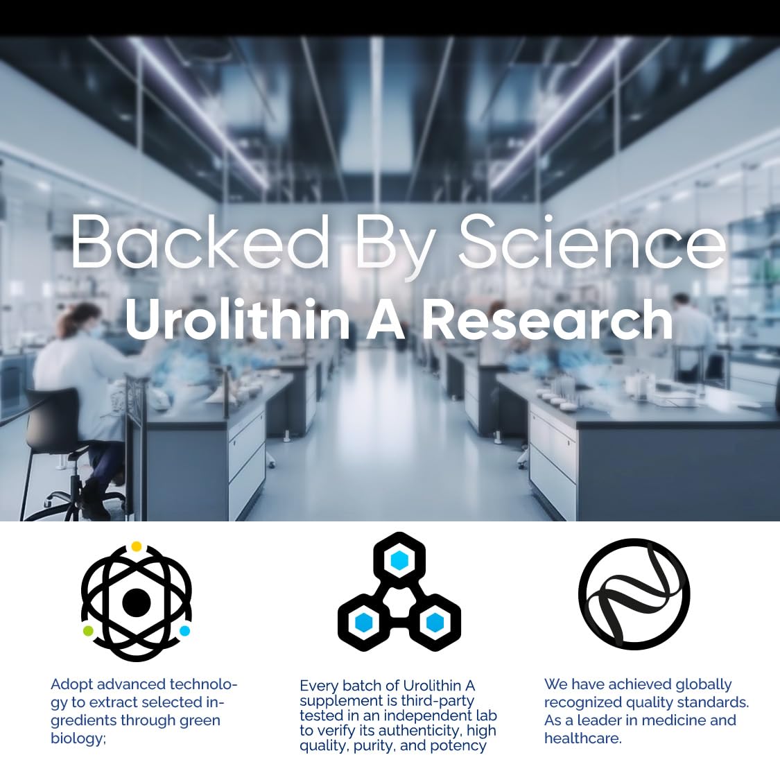 - Boosts Energy and Vitality: Urolithin A supports metabolism, boosts energy levels, enhances physical performance, and supports cognitive function