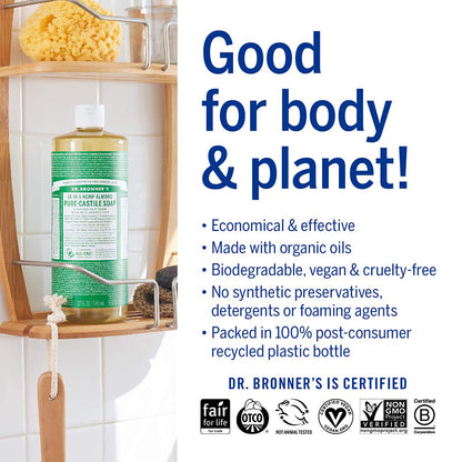 - MADE WITH ORGANIC OILS & CERTIFIED FAIR TRADE INGREDIENTS: Dr. Bronner's Pure-Castile Liquid Soaps are made with over 70% certified organic & fair trade ingredients, promoting healthy communities, ethical working conditions & fair prices