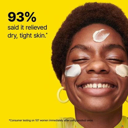 - 93% agree it relieves dry, tight skin**. Dermatologist tested. **Consumer testing on 107 women immediately after using product once.