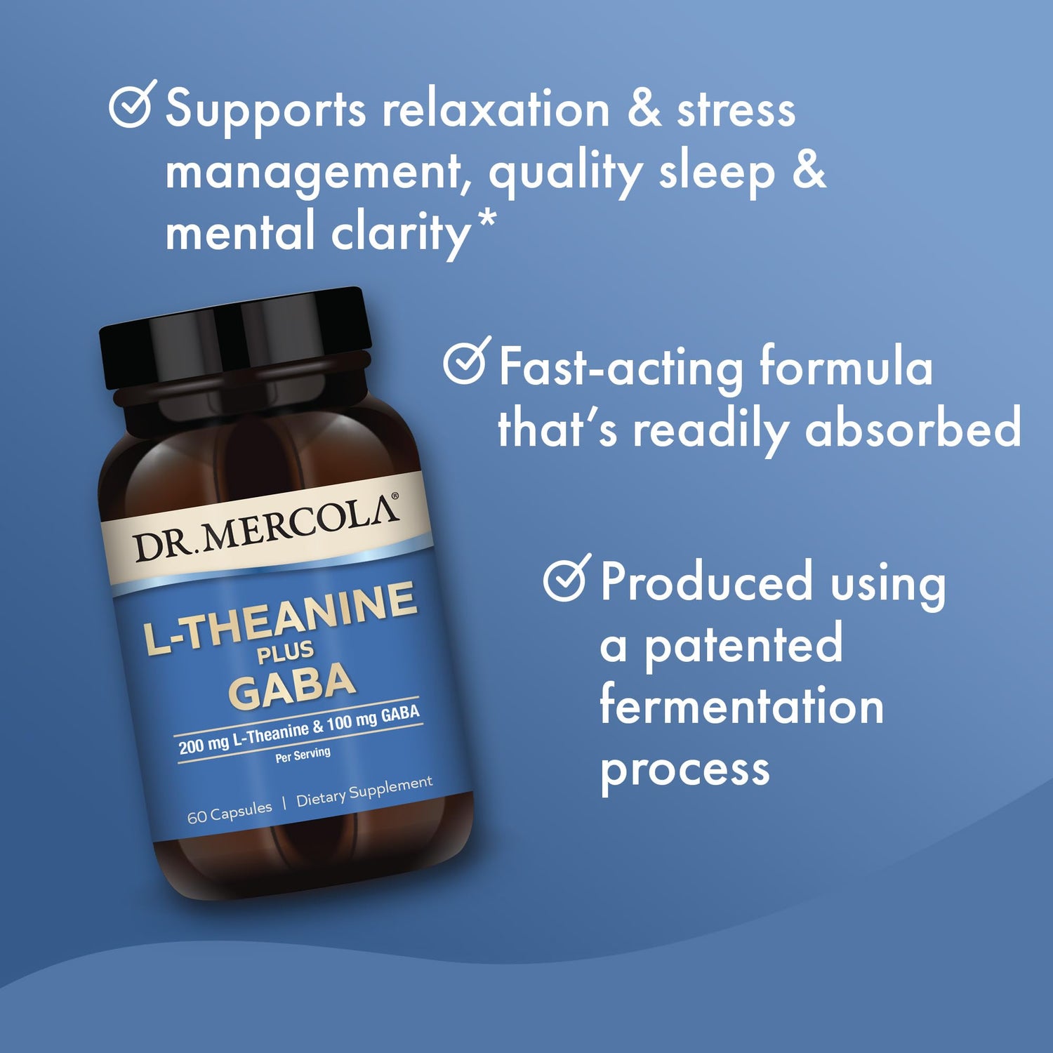 Dr. Mercola L-Theanine Plus GABA, 60 Capsules, Non-GMO, Gluten Free, Soy Free